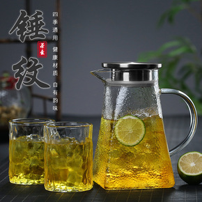 厂家批发高硼硅加厚玻璃锤纹冷水壶凉水壶晾白开水果汁...
