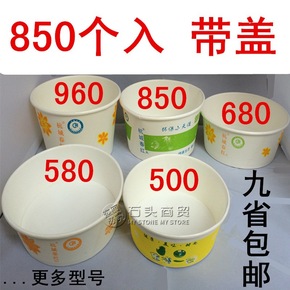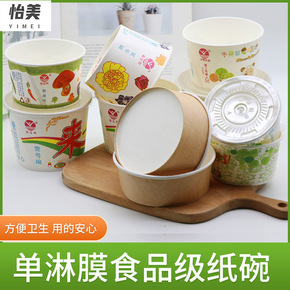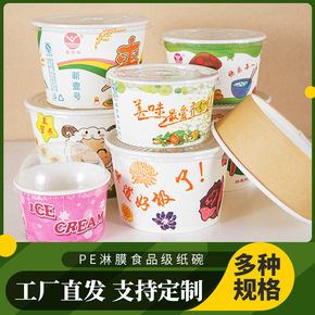 纸碗一次性批发家用餐盒加厚外卖打包圆形可配盖冰淇淋...