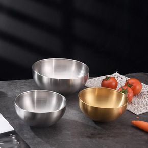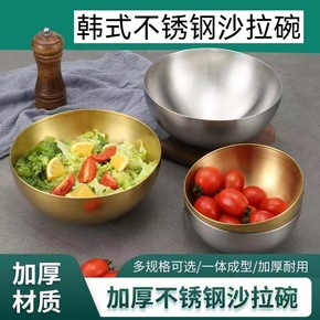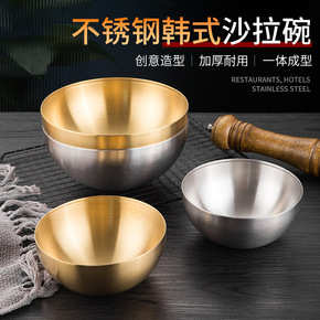 不锈钢韩式沙拉碗单层冷面碗商用金色拌面拌饭碗水果碗...