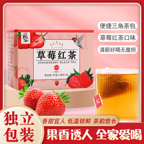 盒装草莓红茶组合三角包袋泡茶 草莓冻干组合调味冷泡...