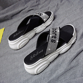 松糕跟厚底凉鞋女2021夏季新款韩版仙女风水钻平底...