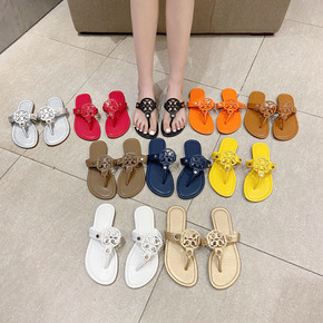 2020年夏季新品外贸舒适平底套趾金属休闲凉鞋女3...