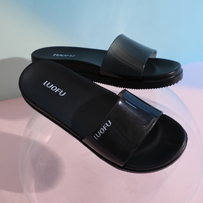 外贸大码凉拖女夏季欧美新款厚底PU双扣平底透明时尚...