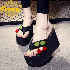 夏季超高跟人字拖女厚底松糕跟防滑凉拖鞋手工DIY樱...