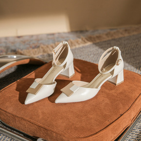 55801【羊皮】包头凉鞋2022年夏季新款方扣尖...