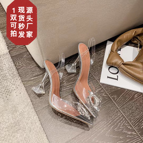 新款凉鞋女新款夏季透明水晶鞋鱼嘴果冻鞋水钻平底女鞋...