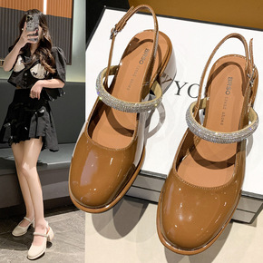 凉鞋女2022新款韩版包头后空玛丽珍时装单鞋粗跟一...
