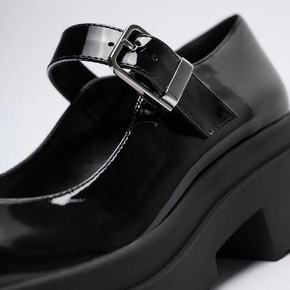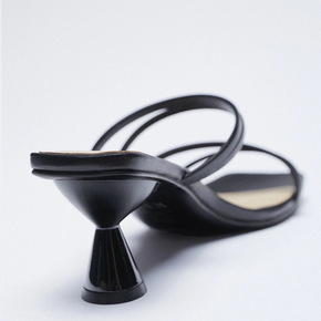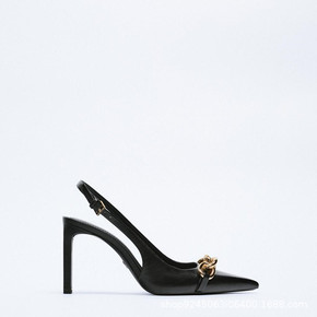 ZA秋季新品2021女鞋黑色链条饰露跟皮革气质高跟...