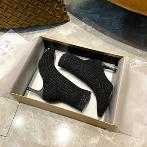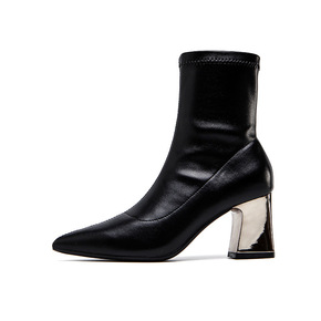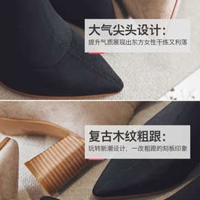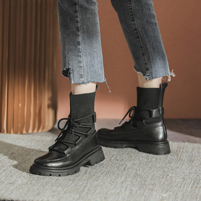 秋冬季粗跟马丁靴子袜短靴高跟女鞋2021网红瘦瘦秋...