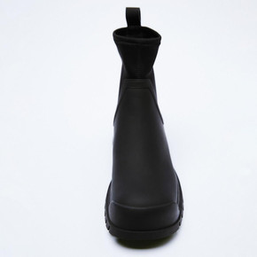 ZAR*秋季新品女鞋黑色波浪厚底增高暗黑切尔西靴弹...