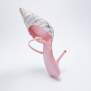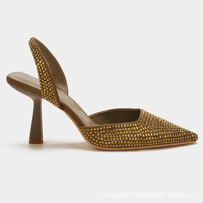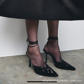 ZA女鞋秋季新品亮饰露跟高跟穆勒鞋水钻尖头后空细跟...