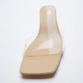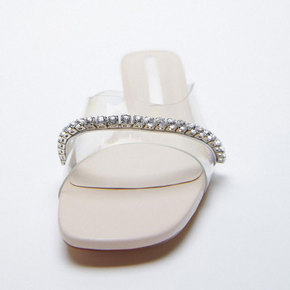 ZAR*女鞋拖鞋2021春季透明PVC亮光水钻高跟...