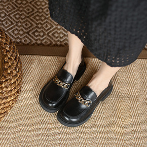 女鞋乐福鞋黑色一脚蹬英伦小皮鞋复古英伦风懒人平底单...