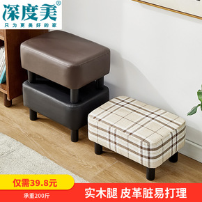 油蜡皮小凳子方凳圆凳客厅茶几矮凳软面家用搁脚换鞋凳...