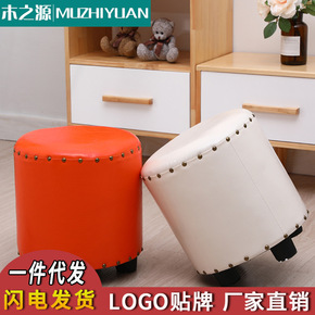 小皮凳子时尚木矮凳创意圆凳沙发凳小板凳家用软凳省空...