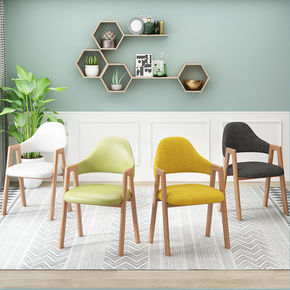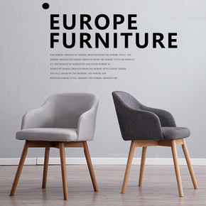 北欧布艺洽谈椅子休闲实木咖啡餐厅电脑凳子家用现代简...