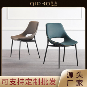 意式轻奢极简椅子靠背简约现代家用北欧皮餐椅单个风餐...