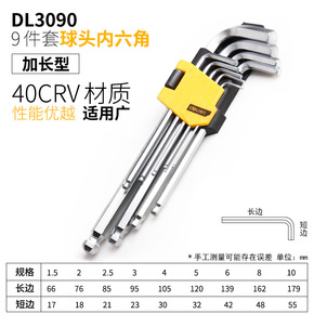 得力工具 发黑加长特长平头内六角9件套内六边形扳手...