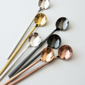 小勺长柄搅拌棒吧勺搅拌勺不锈钢子加长冰沙勺调酒勺奶...
