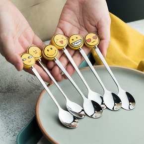 可爱表情勺子不锈钢搅拌勺卡通甜品勺创意咖啡勺长把陶...