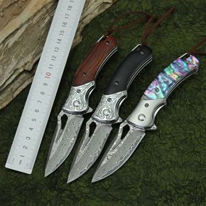 迷你折刀抗战纪念版小刀大马士革钢黄铜柄折叠刀手工刀...