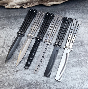 跨境批发价蝴蝶练习刀 未开刃蝴蝶甩刀 户外折叠刀把...