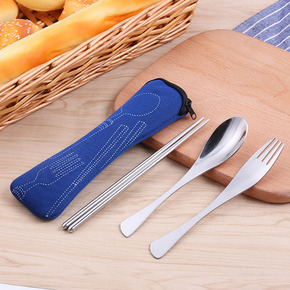 创意不锈钢便携餐具三件套韩式沙拉勺叉筷子套装304...