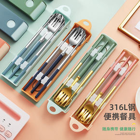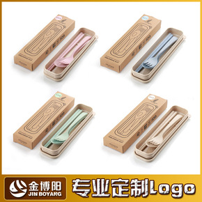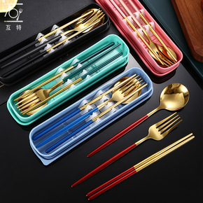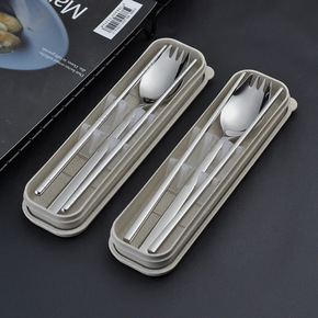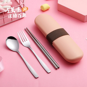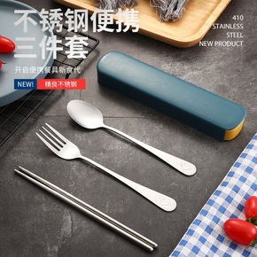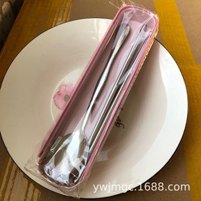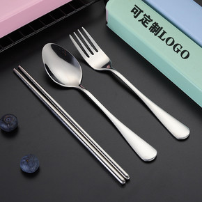 304不锈钢餐具套装便携餐具两件套三件套盒子log...