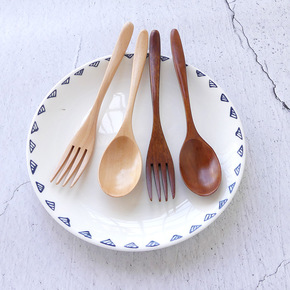 韩国ins复古法式格子碎花甜品叉子勺子少女餐具拍摄...