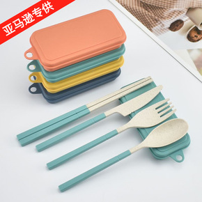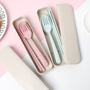 小麦秸秆餐具套装 便携式餐具三件套 勺子叉子筷子广...