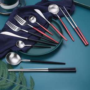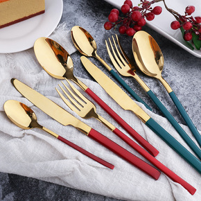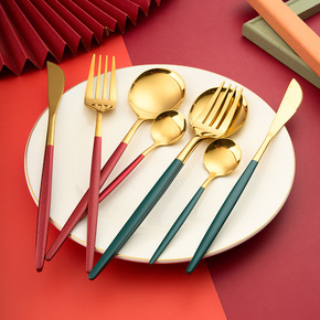 跨境葡萄牙镀钛烤漆不锈钢24件套刀叉勺四主件牛排西...