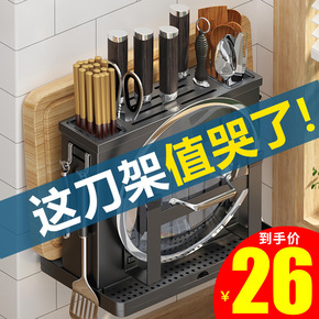 刀架壁挂式厨房免打孔菜刀不锈钢筷子筒一体锅盖菜板架...