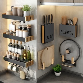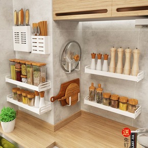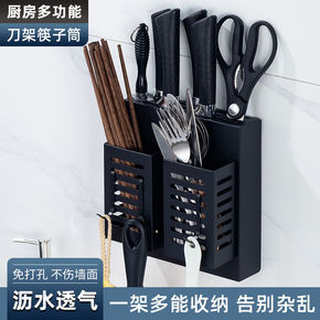 厨房置物架壁挂免打孔调料收纳架墙上沥水刀架筷子筒锅...