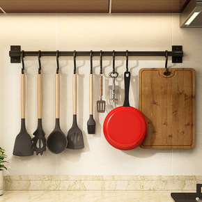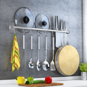 免打孔厨房杆挂杆太空铝壁挂置物架锅铲勺子铲子挂钩收...