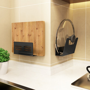 1厨房置物架壁挂式可放锅盖菜板一体免打孔粘板架子墙...