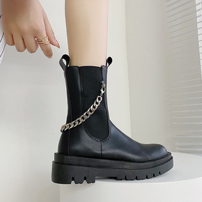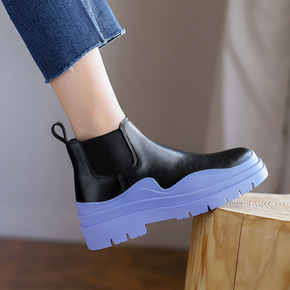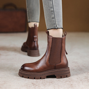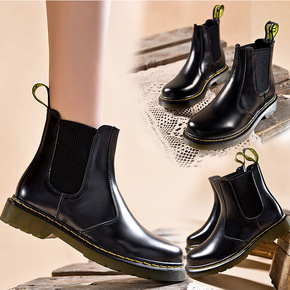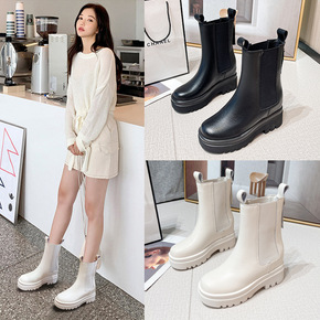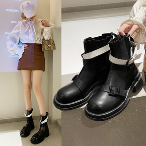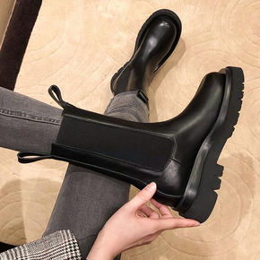 全皮厚底皮靴切尔西短靴女马丁靴潮英伦风中筒靴网红m...