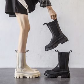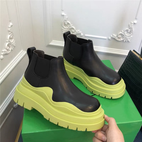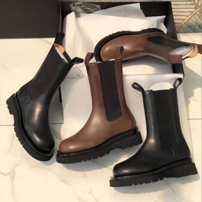 RO BV中筒厚底切尔西靴男女情侣短筒皮靴烟筒靴英...