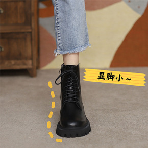 真皮马丁靴女英伦风烟筒靴厚底增高2021新款烟管短...