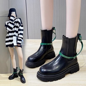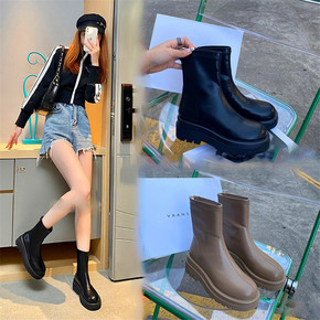 2021新款网红瘦瘦靴英伦风厚底短靴女秋冬爆款复古...