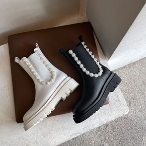 独立站新款欧美圆珠短靴切尔西女靴马丁靴女英伦及祼短...