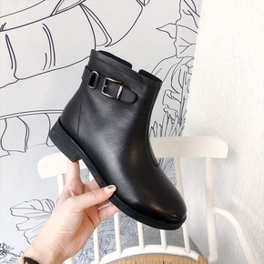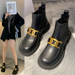 靴子女春秋单靴2021新款英伦风平底炸街小短靴百搭...