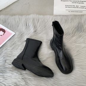 切尔西靴女英伦风春秋新款低跟松紧套筒单靴2021新...