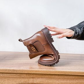 法式复古小短靴女真皮马丁靴2021新款单靴粗跟平底...