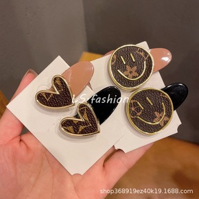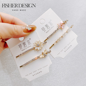 发饰女仿牛皮印花发夹水钻水晶刘海侧边夹森女一字夹东...