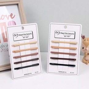 韩国大东门发饰简约奶茶色一字发夹5只卡装咖色边夹滴...