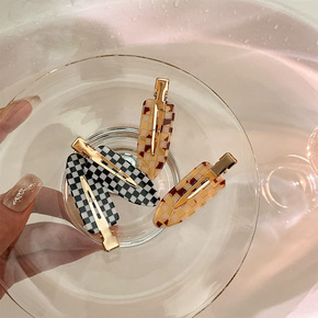 韩国新款棋盘格无痕醋酸发夹刘海夹侧边夏季发卡化妆洗...