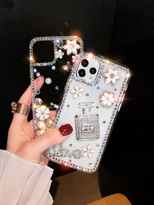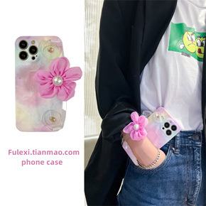 适用珍珠玫粉花iPhone13promax手机壳透...
