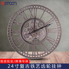 美式古复齿轮挂钟欧式金属艺术壁钟客厅装饰创意指针石...