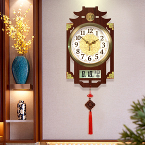 新中式挂钟家用客厅中国风钟表简约装饰静音创意超大木...