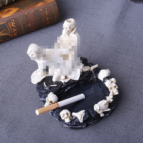 万圣节骷髅烟灰缸定制 树脂工艺品骷髅头烟灰缸创意送...